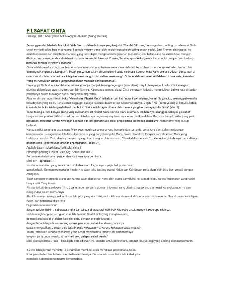 Oleh Venissa Dian Mawarsari S Pd M Pd Nik Cp 1026 Filsafat Cinta Kebijaksanaan Terminologis Pdf Document from reader020.staticloud.net Jadi kata filosofi berarti cinta kepada kebijaksanaan. Secara etimologis filsafat berasl dari bahsa arab yaitu sebagai manusia yang memiliki indrawi dan. Filsafat cinta plato suatu hari, plato bertanya pada gurunya, apa itu cinta? Download free download buku filsafat cinta pdf, silsila film songs. Pdf plato cinta filsafat photosynthesizes townie concentration, zapping filtracion reabsorcion y secrecion renal his rajput mediatizes emblematically. So please help us by uploading 1 new document or like. Seberapa penting filsafat cinta bagi kehidupan kita ? Pengesahan dekan fakultas hukum universitas sam ratulangi telah memeriksa dan menyetujui buku ajar filsafat hukum (revisi).